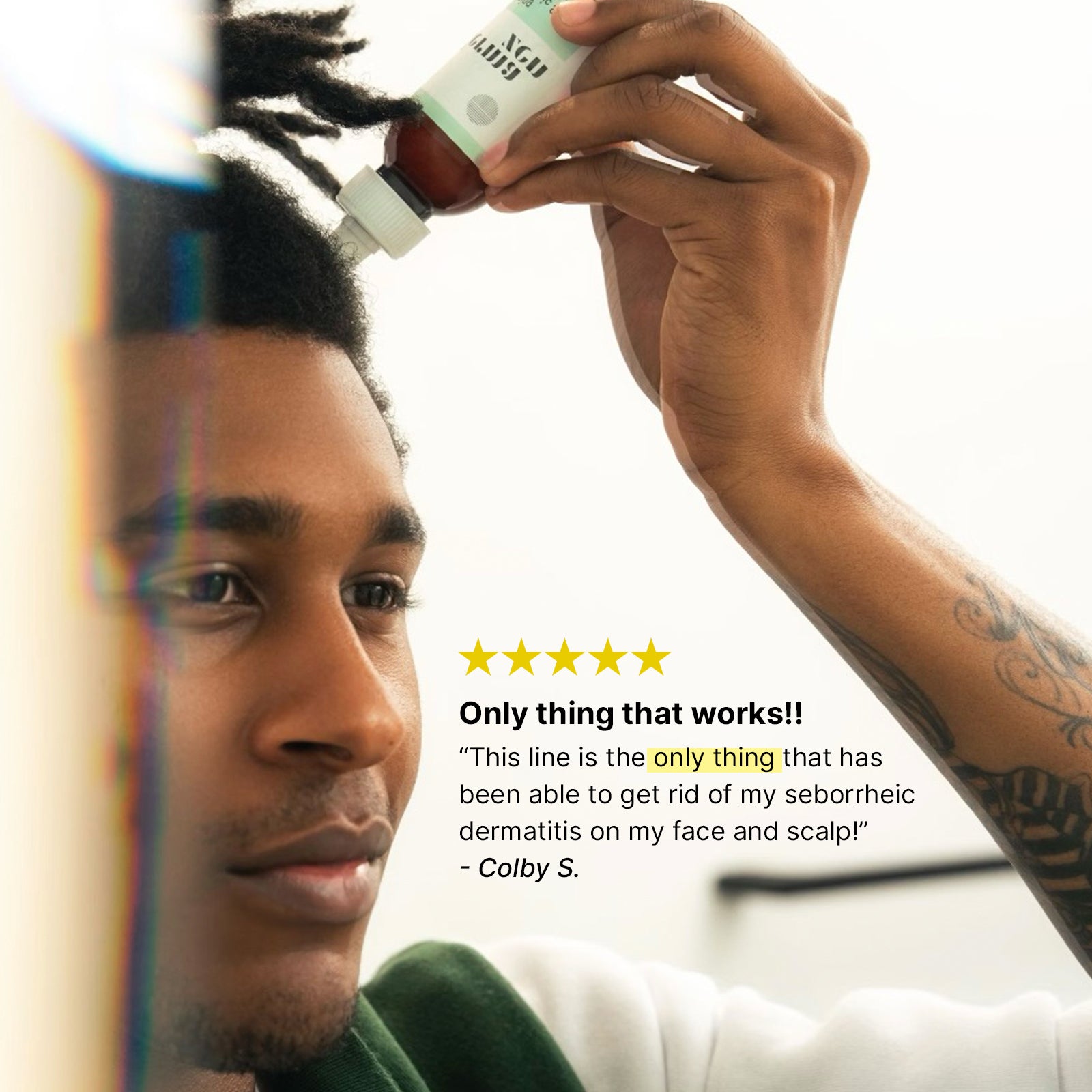 The all-in-one system to soothe your flaky, red, and itchy face and scalp. Made by people with seborrheic dermatitis and recommended by dermatologists.